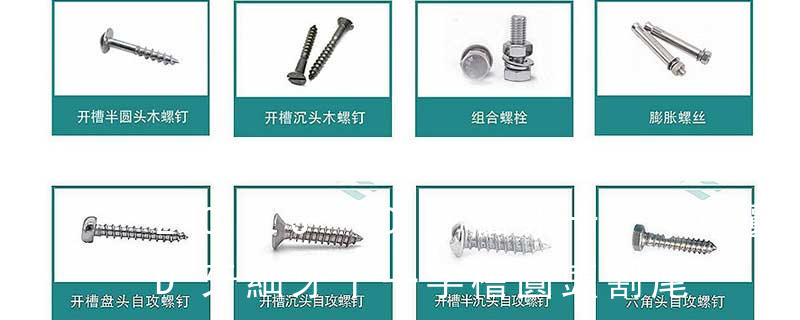 (鐵板牙自攻螺絲) B-2: Plastic Tapping Screw. (塑膠用,自攻螺絲) C: Wooden Screw : 木工螺絲 D: Drywall Screw :水泥墻螺絲 E: Self Drilling Screws鉆尾螺絲(不銹鋼鉆尾螺絲,復合材料鉆尾螺絲) F:膨脹螺絲,四片膨脹螺絲又