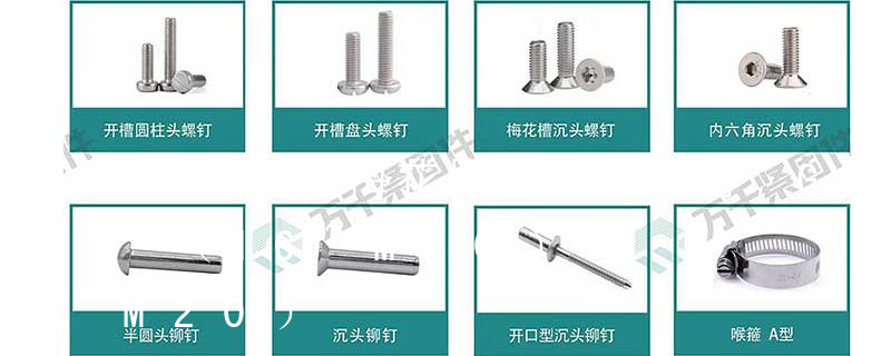 標準螺絲M6~M20有M6,M8,M10,M12,M16,M20。6種型號。其中M6的螺距為1mm,M8的螺距為1.25mm,M10的螺距為1.5mm,M12的螺距為1.75mm,M16的螺距為2mm,M20的螺距為2.5mm。螺紋標記的標注格式為:螺紋代號——螺紋公